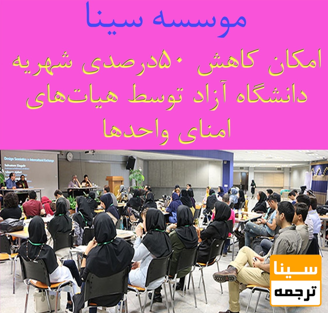 سینا ترجمه: رئیس دانشگاه آزاد اسلامی گفت: هیاتهای امنا واحدهای این دانشگاه تا 50 درصد اختیار کاهش شهریه دارند و این مبالغ در مناطق محروم کمتر از تهران و سایر شهرها است.