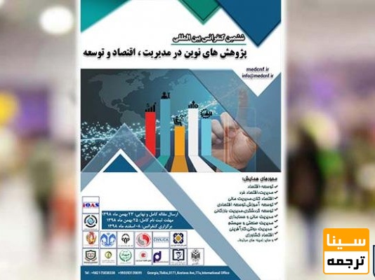 سینا ترجمه : دهمین کنفرانس بین المللی پژوهش های نوین در مدیریت، اقتصاد و توسعه روز یکشنبه، 30 خرداد، 1400 توسط سازمان بین المللی مطالعات دانشگاهی در شهر تفلیس-گرجستان برگزار می شود.