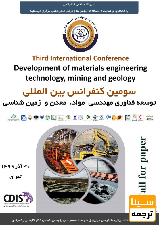 سیناترجمه:سومین کنفرانس بین المللی توسعه فناوری مهندسی مواد، معدن و زمین شناسی در تاریخ 30 آذر 1399 توسط انجمن مدیریت و مهندسی توسعه فناوری در شهر تهران برگزار می شود.
