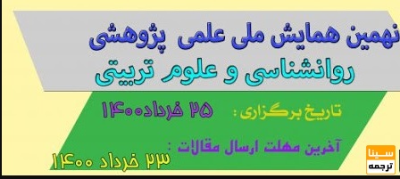 سینا ترجمه : نهمین همایش ملی علمی پژوهشی روانشناسی و علوم تربیتی روز سه شنبه، 25 خرداد، 1400 توسط موسسه پژوهشی رهجویان پایا شهر اترک در شهر شیروان برگزار می شود.