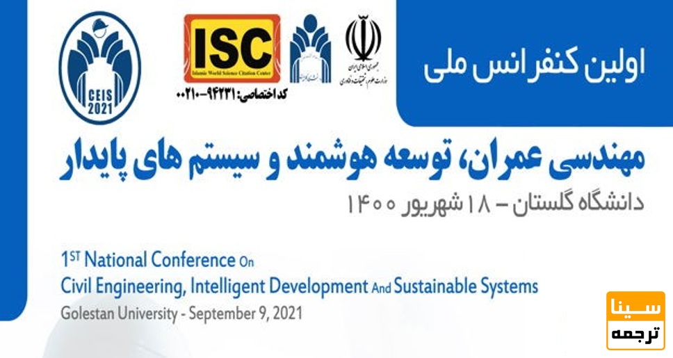 سینا ترجمه: اولین کنفرانس ملی مهندسی عمران، توسعه هوشمند و سیستم های پایدار روز پنجشنبه، 18 شهریور، 1400 توسط دانشگاه گلستان و تحت حمایت سیویلیکا در شهر گرگان برگزار می شود.