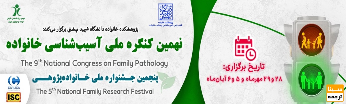 سینا ترجمه: نهمین کنگره ملی آسیب شناسی خانواده و پنجمین جشنواره ملی خانواده پژوهی روز چهارشنبه، 28 مهر، 1400 لغایت پنجشنبه، 29 مهر، 1400 توسط دانشگاه شهید بهشتی در شهر تهران برگزار می شود.